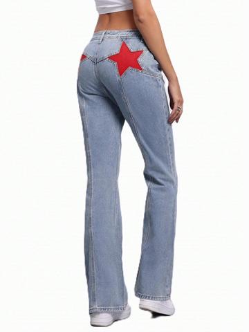 - Stern-Patch-Design: Das Stern-Patchwork auf der Rückseite verleiht dieser Jeans einen besonders süßen Retro-Touch.