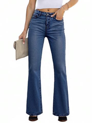 Mit diesen Schlagjeans mit mittelhohem Bund schlüpfen Sie in den Retro-Y2K-Stil! Gefertigt aus einem dehnbaren Materialmix aus 63 % Baumwolle, 29 % Polyester und 8 % anderen Fasern, bieten sie ein weiches, atmungsaktives Tragegefühl, das Ihre Kurven sanft umspielt und gleichzeitig eine schmeichelhafte, lässige Silhouette zaubert. Der helle Denim-Look und der klassische Schlaghosenschnitt sorgen für einen nostalgischen und trendigen Look, während der mittelhohe Bund sanft den Bauch formt und Ihre Beine optisch verlängert.