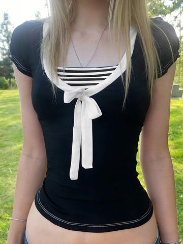 Kurzarmshirt mit kontrastierenden Streifen