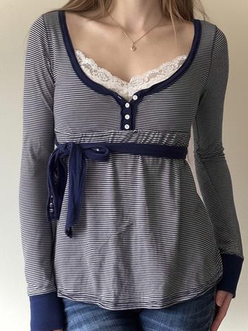 Langarmshirt mit kontrastierenden Spitzenstreifen