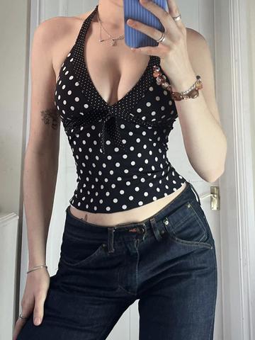 Neckholder-Weste mit gepunkteten Trägern und Bindeband vorne