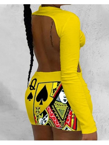 Rückenloses, figurbetontes Kleid mit Poker-Print