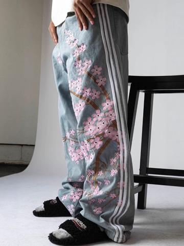 Retro-Streifen-Boyfriend-Jeans in Pflaumenblütenform