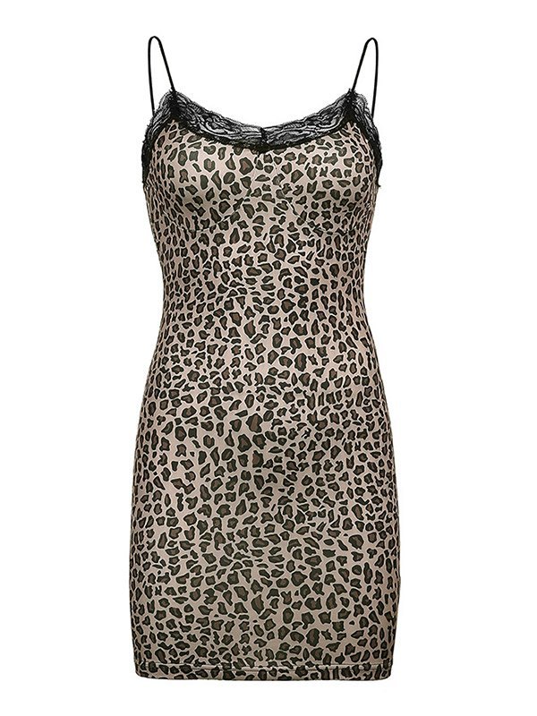 • EMMIOL Spitzen getäfeltes Leopard Minikleid