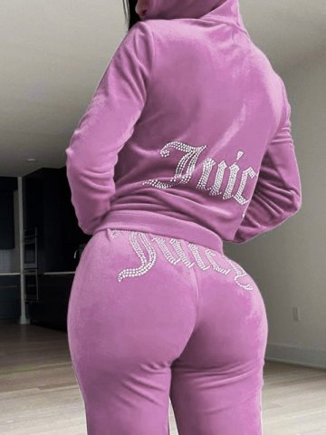 Strass-Samt-Langarm-Trainingsanzug-Set