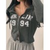 • EMMIOL Strick-Crop-Top mit Reißverschluss und Briefdruck und Kapuze