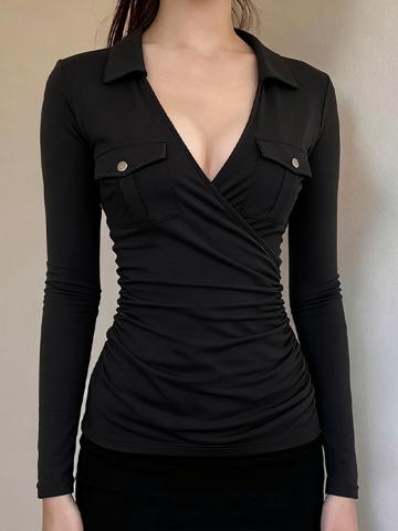 • EMMIOL V-Ausschnitt, lange Ärmel, gekreuzte Falten